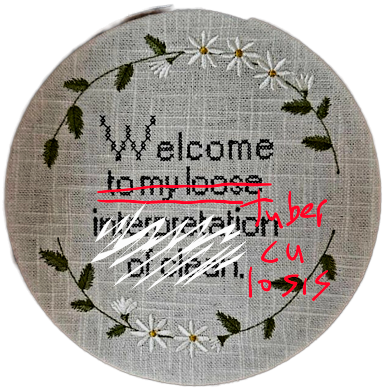 I opened Pinterest on my phone at 3 a.m. this morning and saw a framed cross-stitch wall hanging that said, “Welcome Tuberculosis.” But then I squinted until it said “Welcome to my loose interpretation of…” I am 51 years old, and I have cataracts.